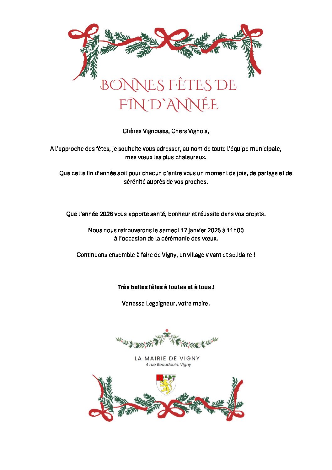 La mairie vous souhaite de très bonnes fêtes.